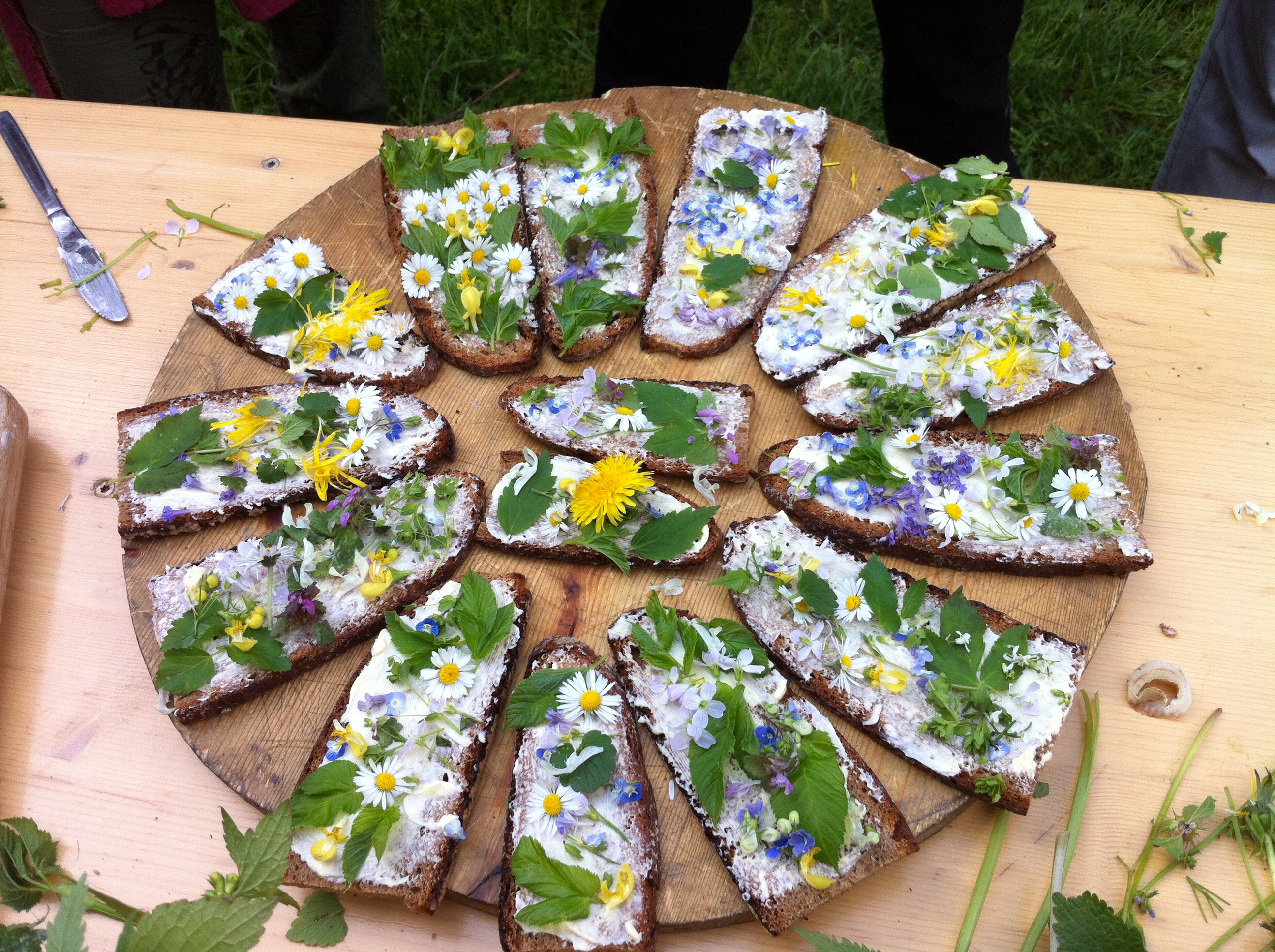 Eine kleine Handvoll frische Blüten von Gänseblümchen, Immergrün, Schlüsselblume, Veilchen und Vergissmeinnicht in einen Topf geben. Mit 0,7 Liter Honigmet übergießen.