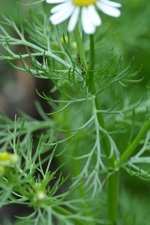 In der Kamillenblüte sehen wir das gleißende Licht des Hochsommers. Über dem trockenen, warmes Ackerboden haben die Lichtkräfte in ihr ihren Ausdruck gefunden. Der Blütenkranz ist blendend weiß, die aufgewölbte Blütenscheibe hellgelb glänzend. Die Blütenmitte fühlt sich fein an und hat eine glatte Oberfläche, so dass sie im Sonnenlicht einen starken Glanz ausstrahlt. Die Blätter sind sehr fein und zweifach fieberschnittig. Die einzelnen Abschnitte sind nur noch als Linien angedeutet. Eine hohe Sensibilität spricht aus ihrer Gestalt: Wie Antennen oder feinfühlige Sinnesorgane richtet die Kamillenpflanze ihre Blattspitzen in alle Richtungen. Alles an ihr ist auf das Empfangen und Aufnehmen ausgerichtet.