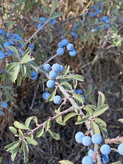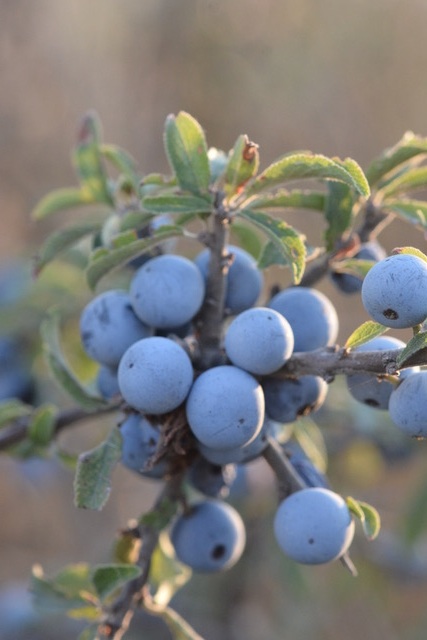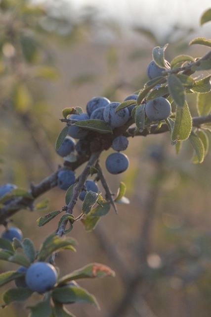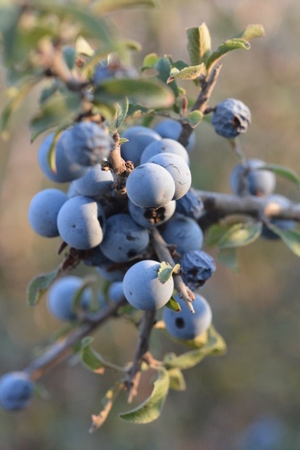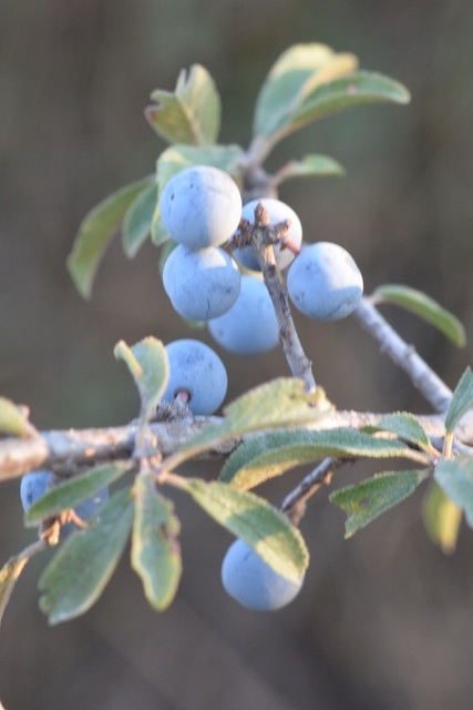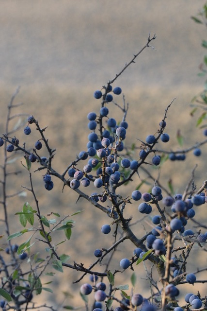 Nach wunderschönen Tagen in der Toscana möchte ich den Oktober der Schlehe widmen. Sie hat mich mit ihren unvergleichlich schönen blauen Früchten täglich am Wegesrand begrüßt. Dort bildet sie, gemeinsam mit dem Weißdorn, der derzeit prachtvolle rote Beeren trägt, und insbesondere mit Heckenrose und Eiche die Begrenzung von Grundstücken und Feldern.