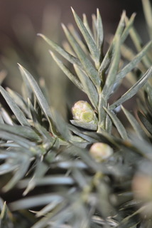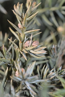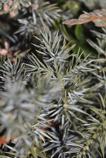Die 1cm langen, nadelförmigen Blätter sind starr und spitz und stehen meist zu dreien beieinander. Die männlichen Wacholderbüsche tragen keine Beeren; an den weiblichen Büschen reifen die Beeren innerhalb von 3 Jahren, dann sind sie kugelrund und blauschwarz.