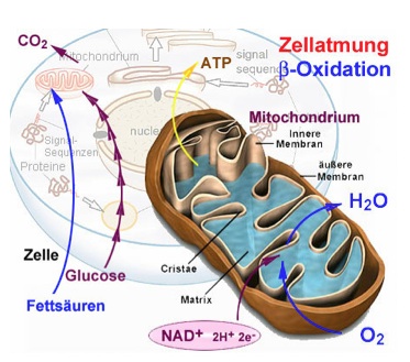 Der menschliche Körper besteht aus ca. 80 Billionen Zellen. Jede Zelle verfügt über eigene „Kraftwerke“, die Mitochondrien. In ihnen wird ATP (Adenosintrophosphat) gebildet, das die Energie für alle Reaktionen und Stoffwechselprozesse des Körpers zur Verfügung stellt.